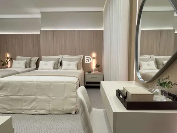 Sobre o Condomínio Condomínio de Excelente estrutura, sendo 1.800m² de Piscinas, Saunas, Campo de Mini Golf, Quadra de Tênis, Piscina Coberta e Aquecida, Banheiras, Bike Station, Espaço Gourmet, Churrasqueiras, Slackline, Pista de Skate, Academia, Labirinto, Parque Infantil, Piscina com Playground, Espaço Kids, Ilha da Aventura, Serviço de Praia.