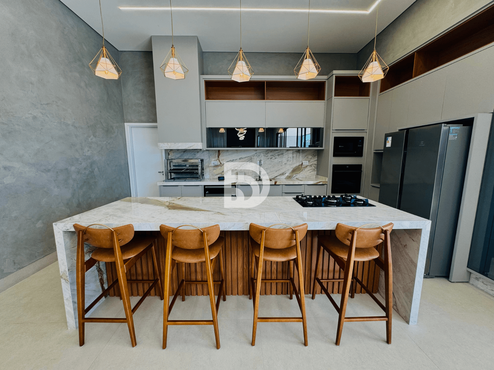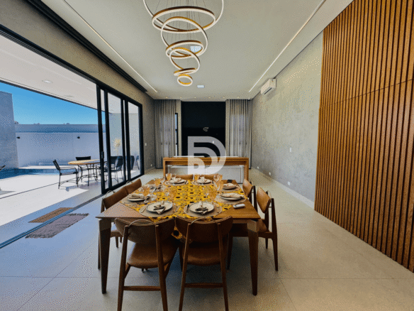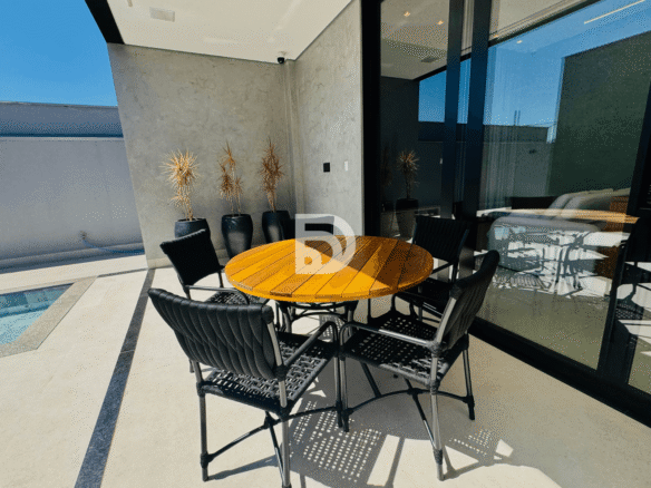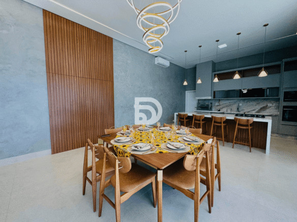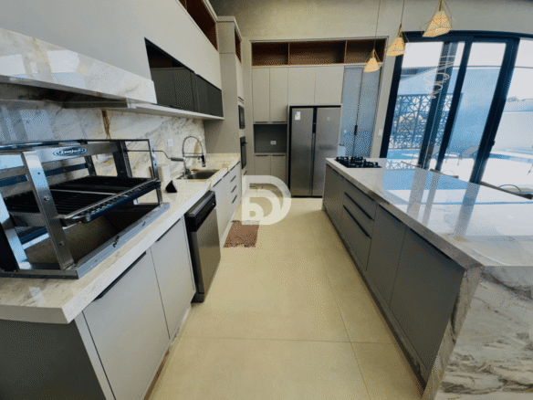 Excelente residência em terreno de 544,77 m², com 312 m² de área construída, totalmente mobiliada e com energia fotovoltaica. O imóvel dispõe de 5 suítes, sala de TV, despensa e uma completa área gourmet, ideal para receber.