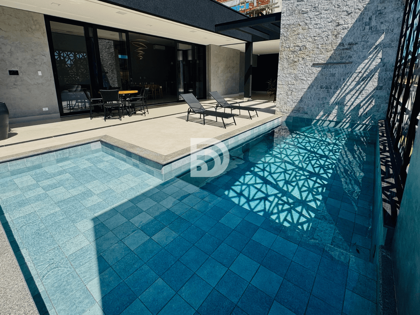 Na área externa, conta com piscina de alvenaria com cascata, proporcionando lazer e conforto.