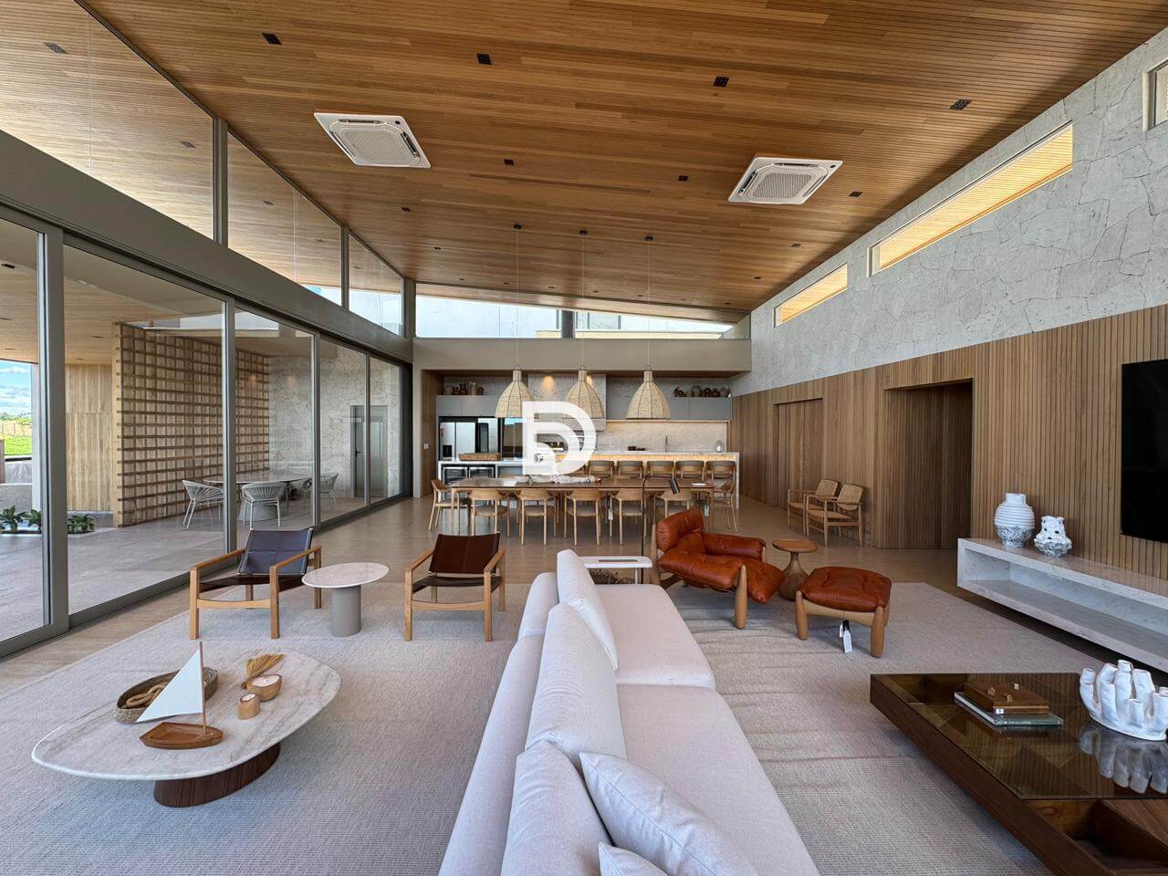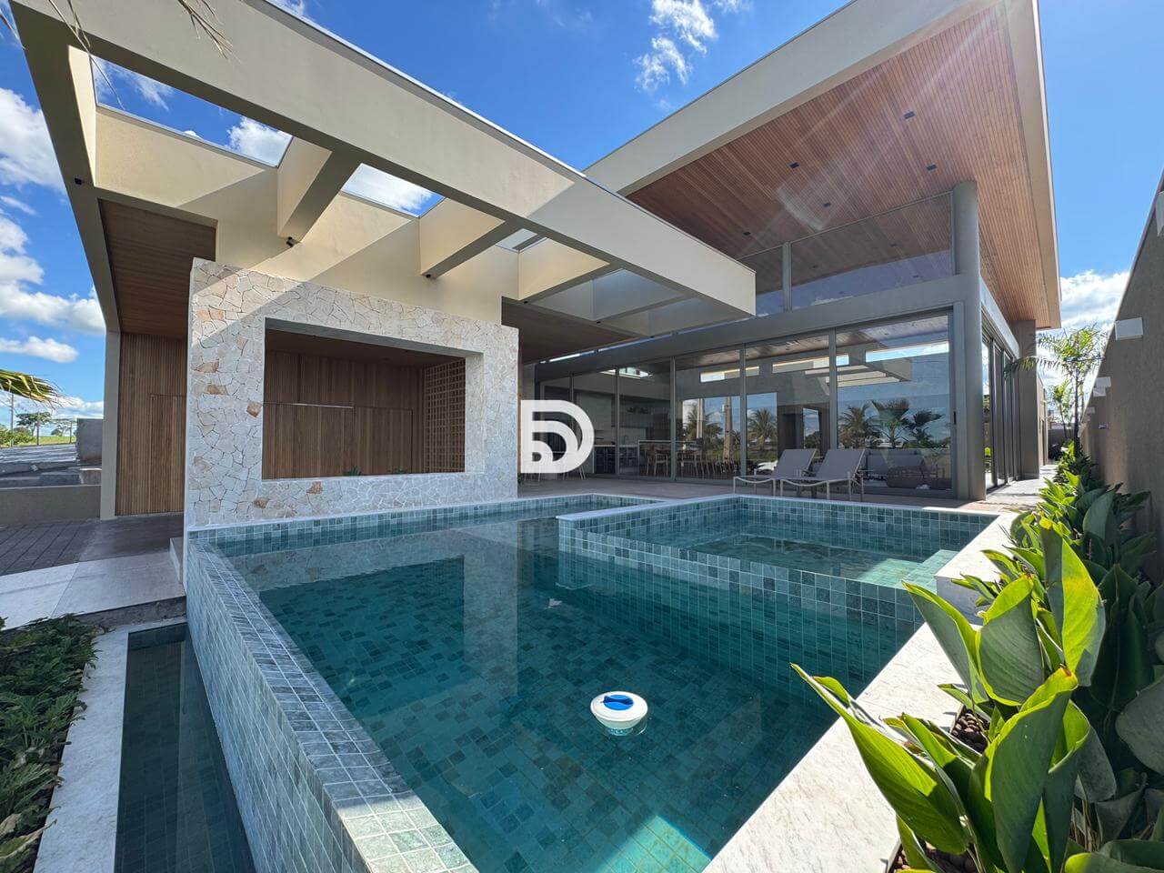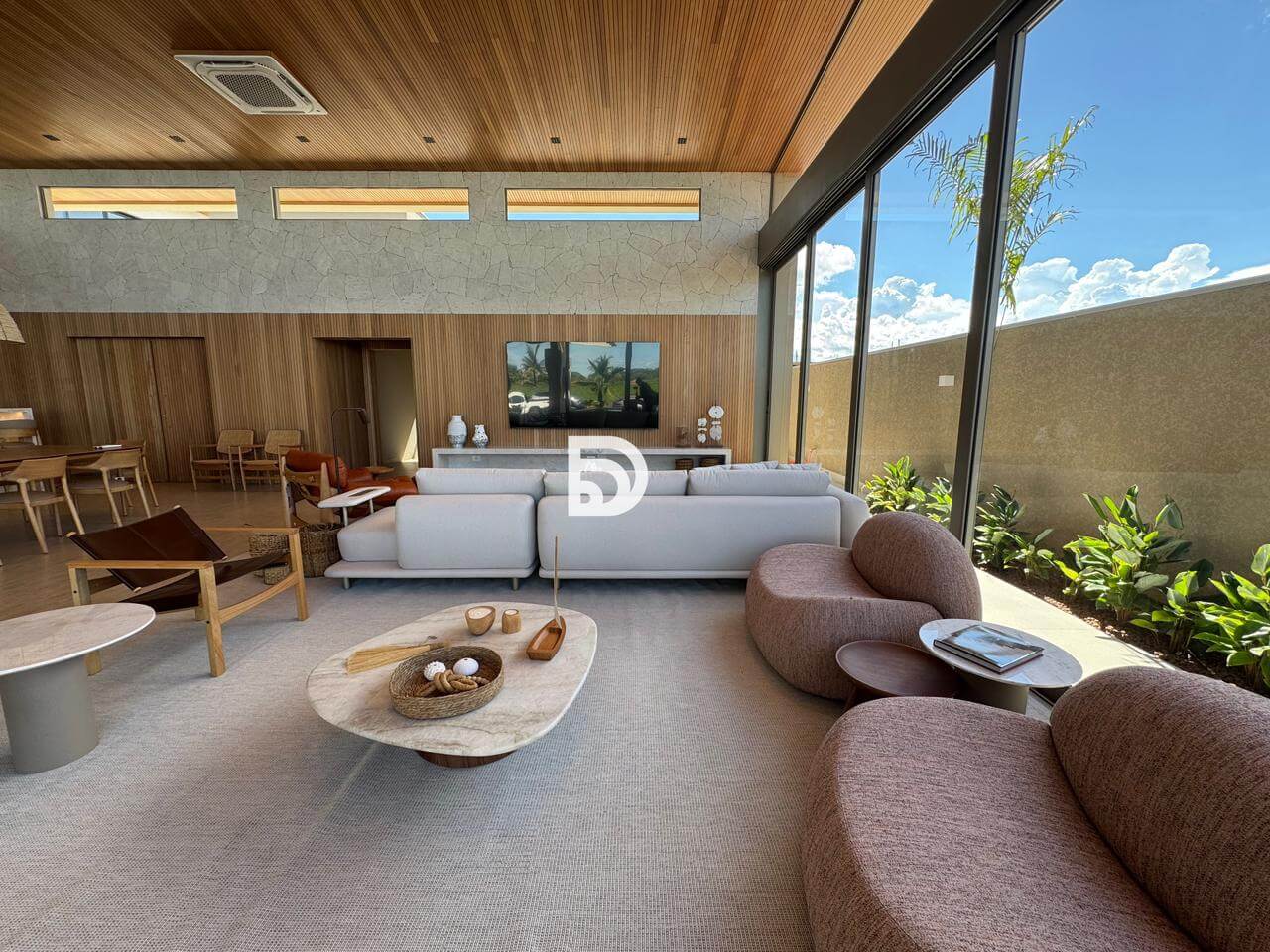 O imóvel é inteiramente revestido com a sofisticação atemporal da pedra Travertino. Nos detalhes internos, foi utilizado o mármore Michelangelo Premium.
