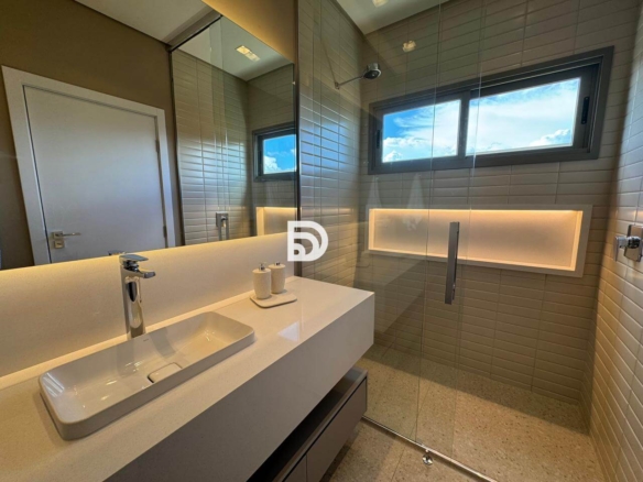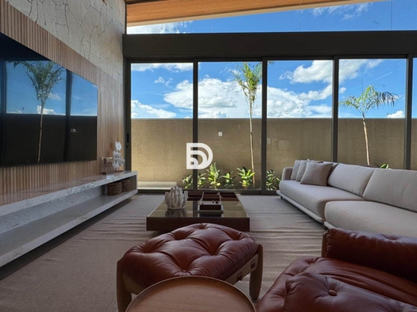 Apresentamos uma oportunidade única: uma residência imponente projetada pelo arquiteto Andrade Oliveira. O imóvel não possui vizinhos de frente, oferecendo uma vista privilegiada para o lago na parte mais alta do condomínio.