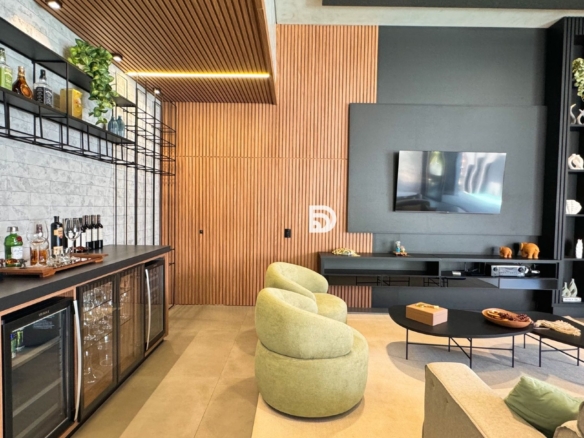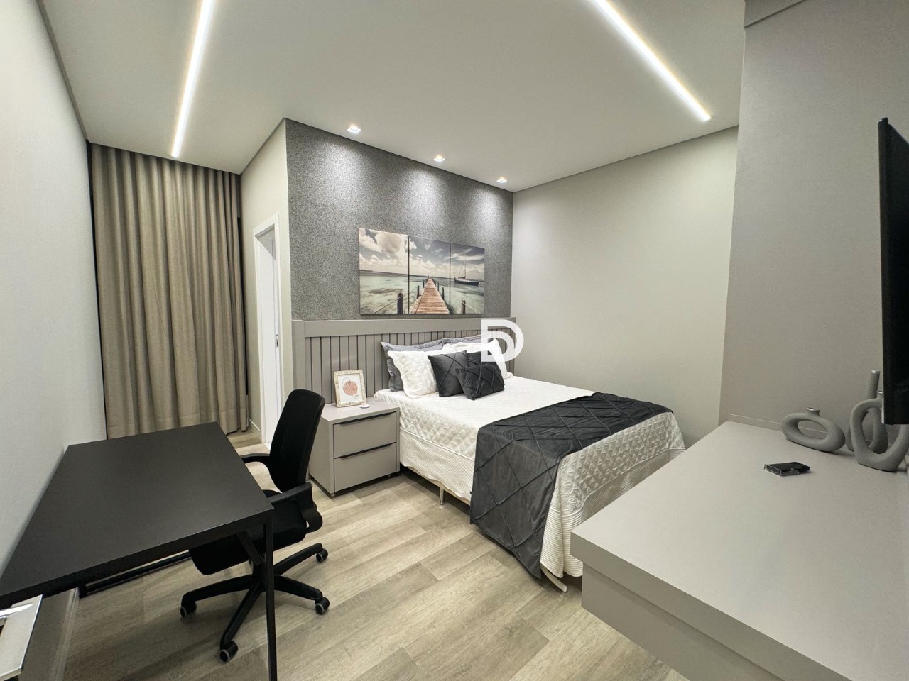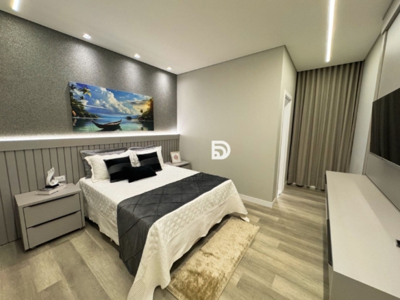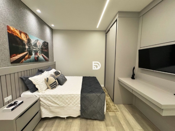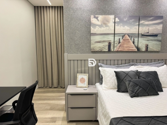 Casa com mobília completa, com todos os móveis embutidos.