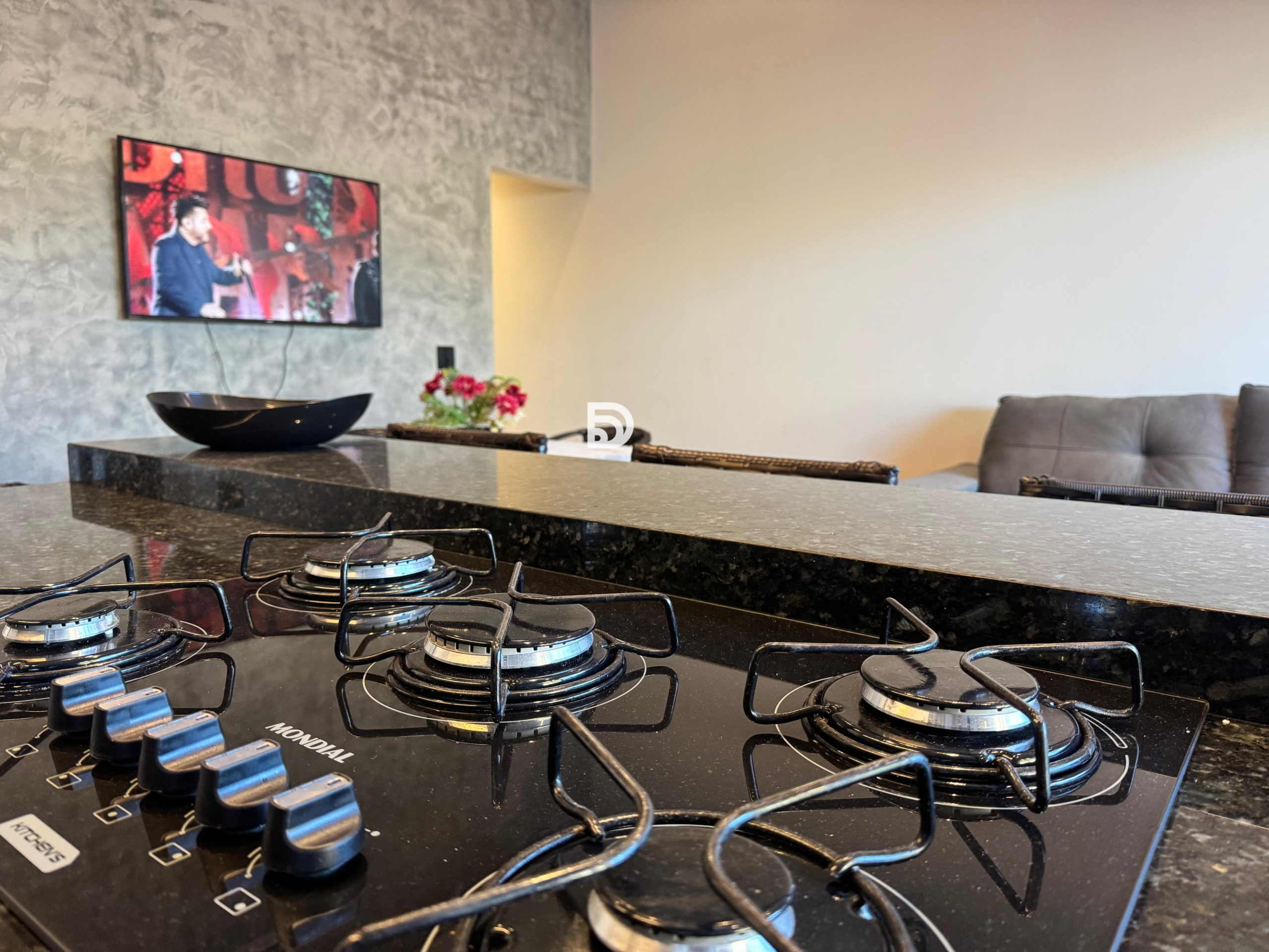 Espaço gourmet com cozinha e churrasqueira