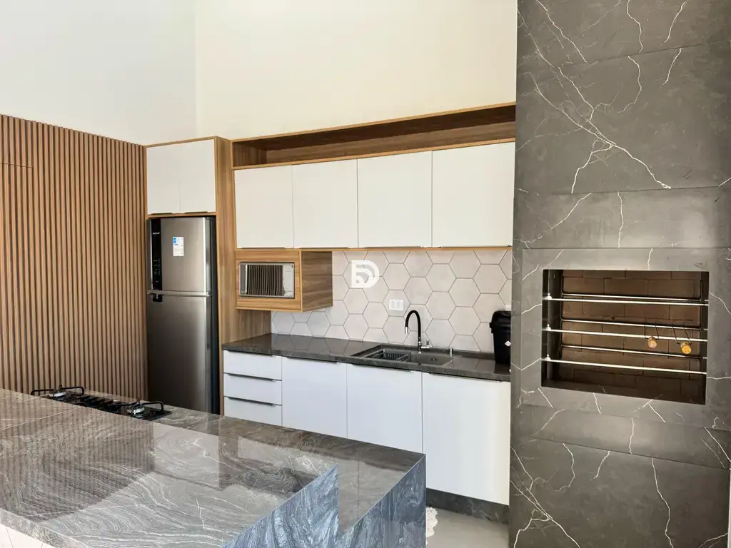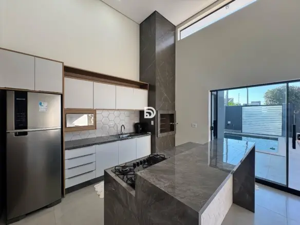 Espaço gourmet com cozinha e churrasqueira