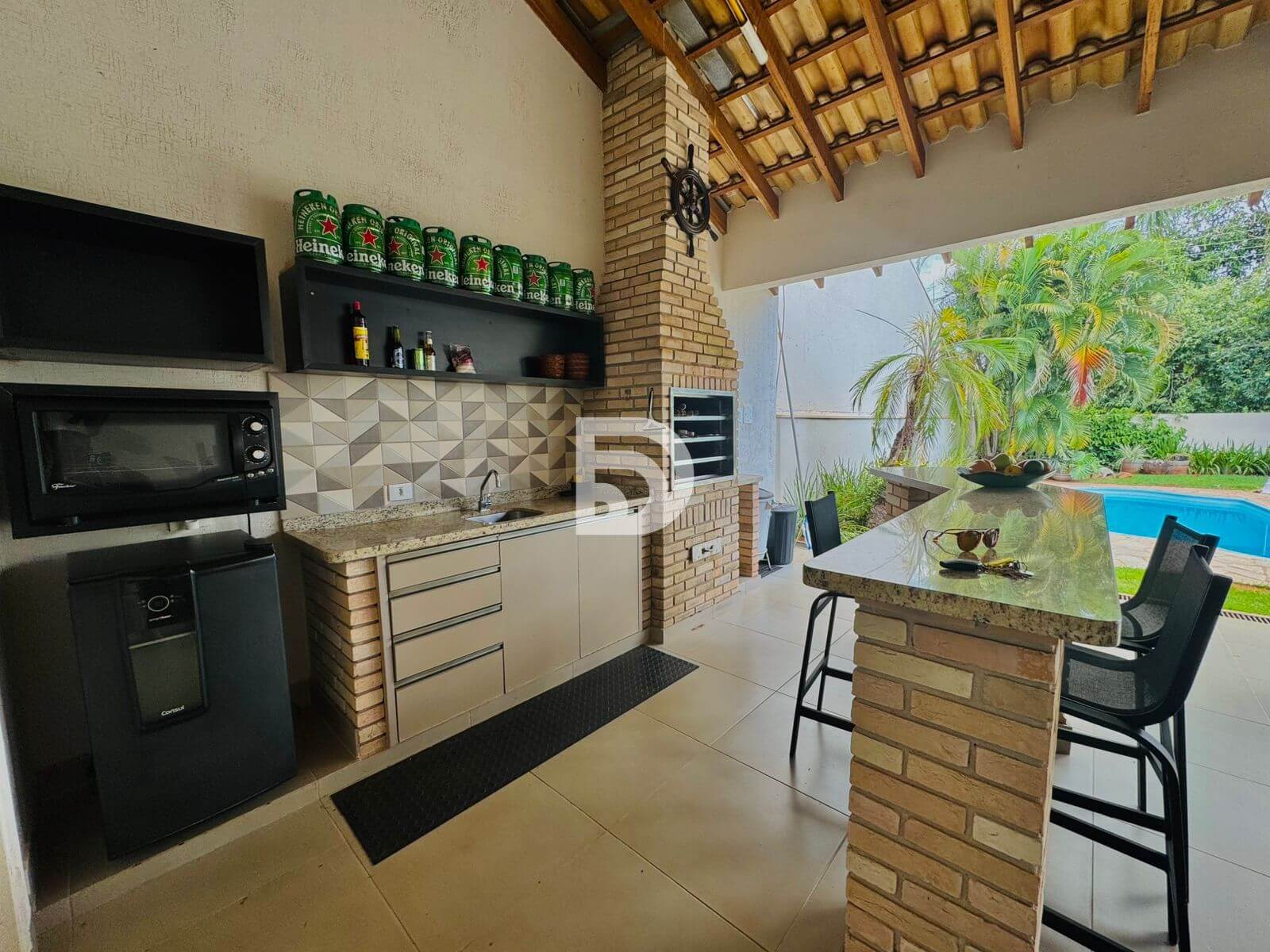 Espaço gourmet com churrasqueira e cervejeira